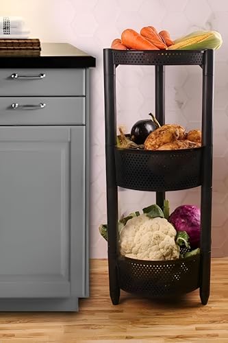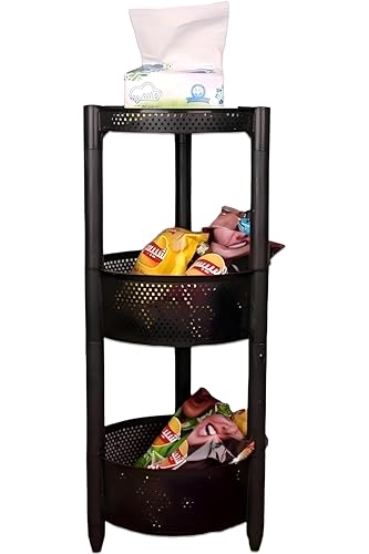 Generic - عربة تخزين مطبخ دائرية من البلاستيك صغيرة الحجم ومتينة ومتعدد الأغراض بـ 3 أرفف بعجلات للفواكه والخضراوات والمواد الغذائية الجافة، لون أسود، 77 × 32 سم