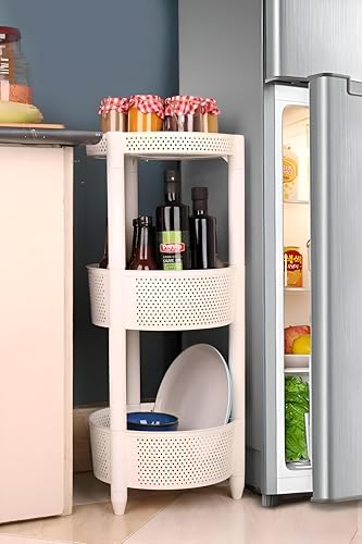 - تعمل عربة التخزين المستديرة المكونة من 3 طبقات على زيادة المساحة الرأسية إلى أقصى حد مع مساحة صغيرة 77 × 32 سم، مثالية للمطابخ الصغيرة أو الشرفات أو الحمامات، مما يوفر مساحة واسعة للفواكه والخضروات وأدوات النظافة والأدوات المنزلية دون وجود مساحات محدودة ساحقة.