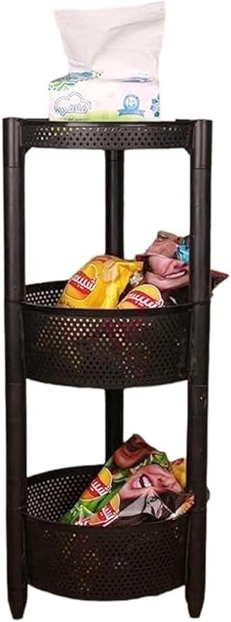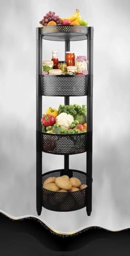 Generic - عربة تخزين دائرية من البلاستيك المتين من 4 طبقات بعجلات للمطبخ بتصميم سلال تخزين للفواكه والخضروات، أسود