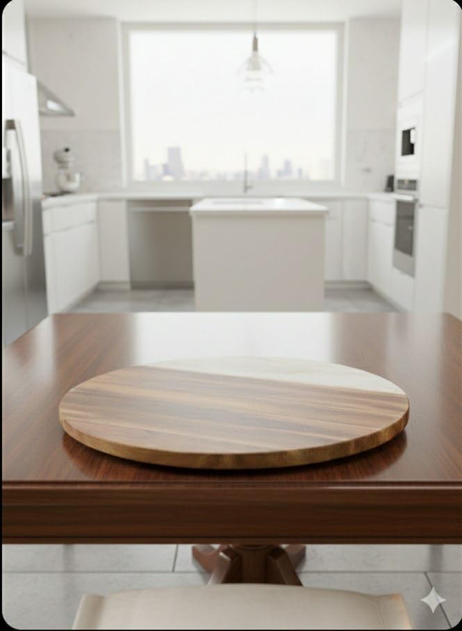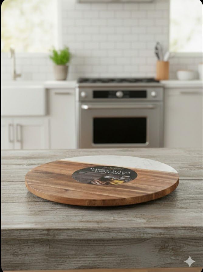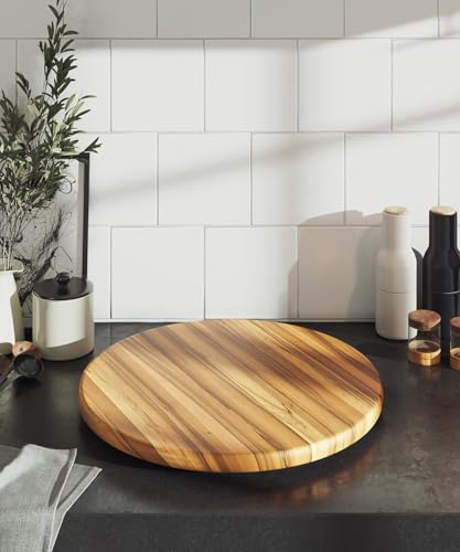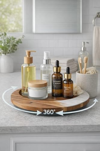 Generic - صينية تنظيم حمام دائرية من الرخام والخشب 35 سم - صينية خشبية دوارة 360 درجة لمستلزمات الحمام وتخزين مستحضرات التجميل