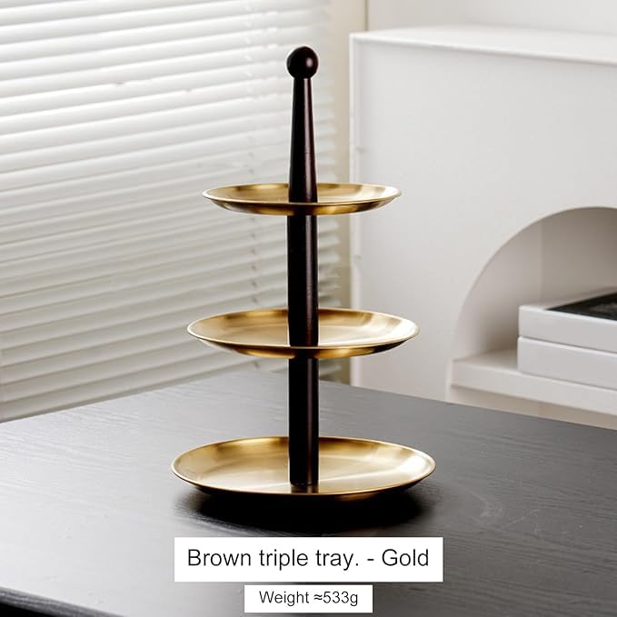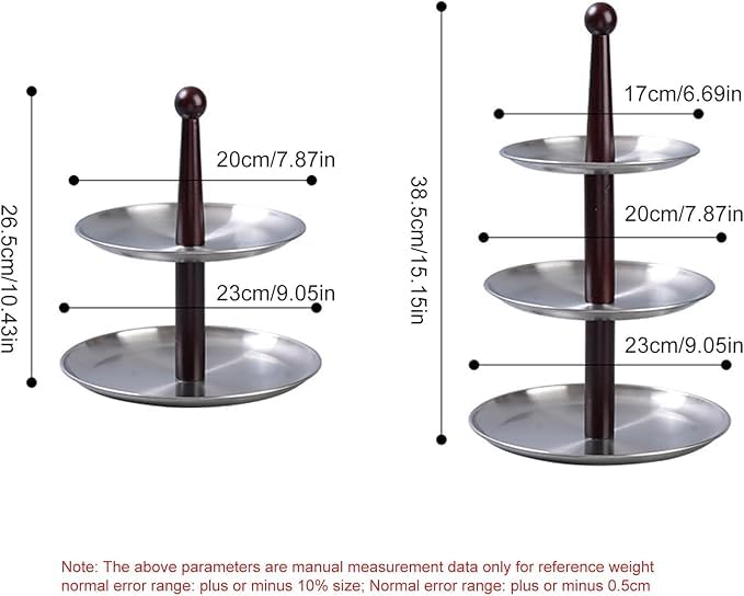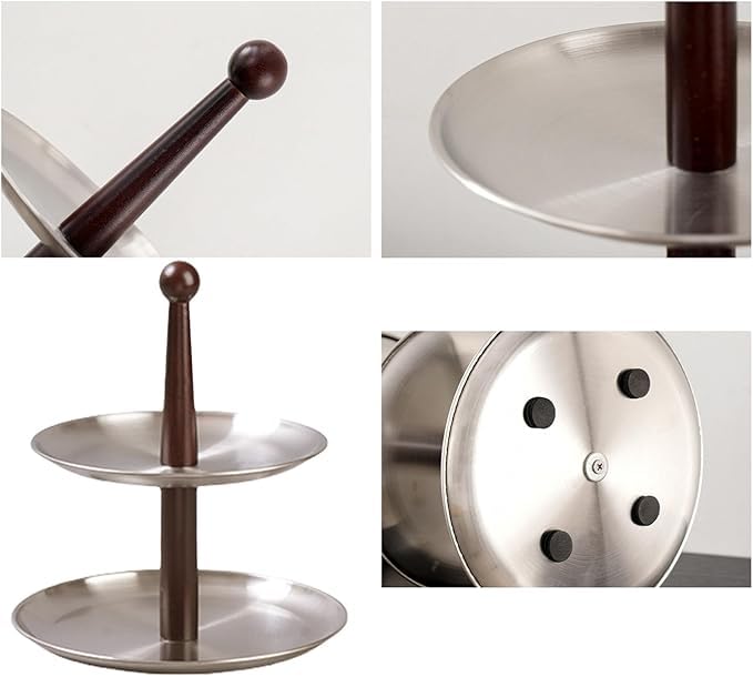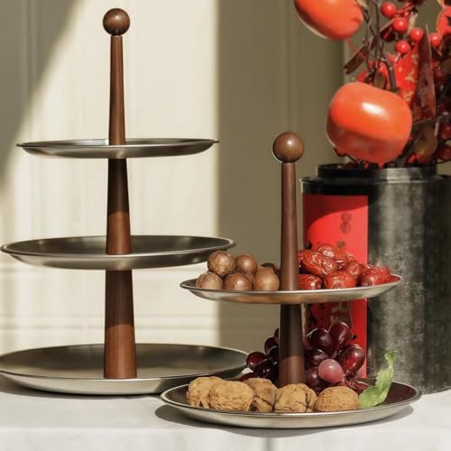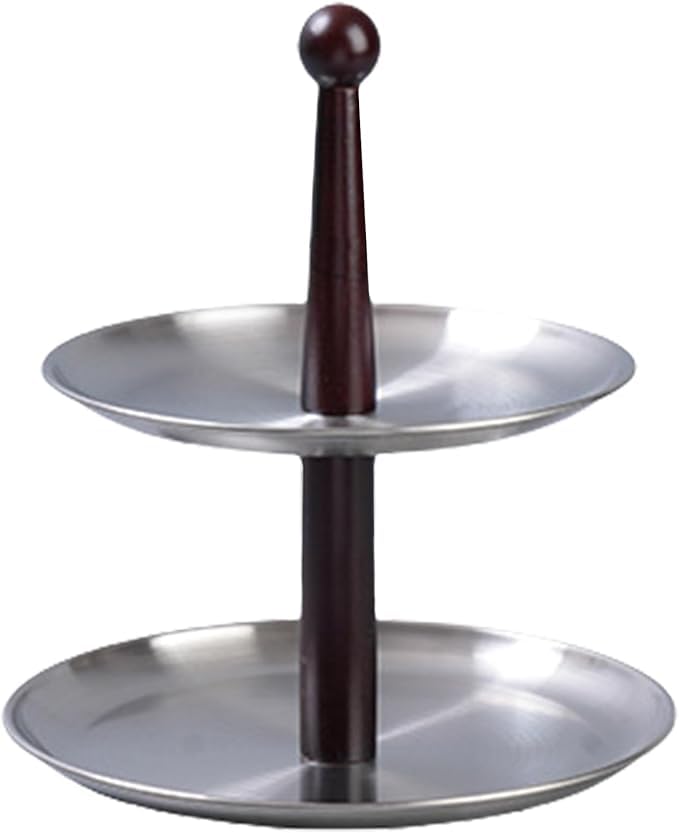 Generic - صينية حلوى وفواكه معدنية دائرية عصرية من الستانلس ستيل لعرض الحلوى والفواكه لتزيين المنزل والمناسبات (طبقتين)