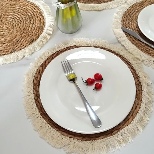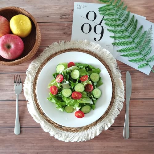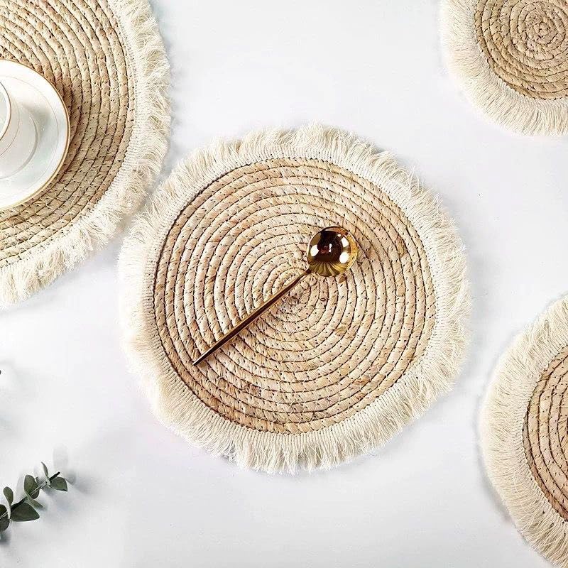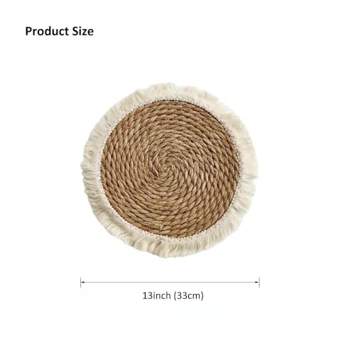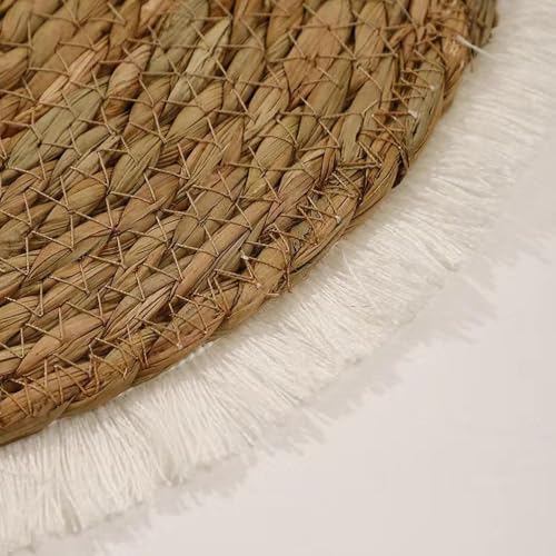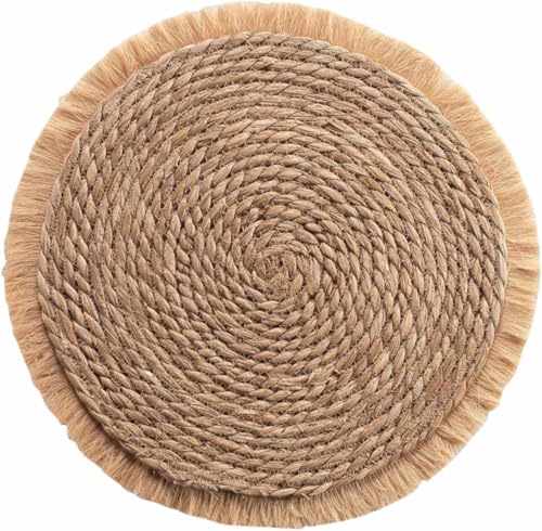 AREXOL - كوستر خوص طبيعي دائري بتصميم أنيق مع شراشيب – قاعدة أكواب وأطباق للمطبخ وغرفة السفرة والديكور – مقاس 35 سم