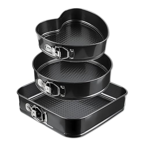 - تتميز مجموعة حلل الطهي الرائعة المكونة من ثلاث قطع بتصميم دائري ومربع على شكل قلب مصنوع من الصلب الكربوني المتين والقوي، مما يضمن مقاومة درجات الحرارة العالية وقوة استثنائية. مع طلاء ممتاز مقاوم للالتصاق، تجعل حلل الخبز المقاومة للتسرب هذه من السهل إخراج المخبوزات الخاصة بك، خاصة تشيز كيك، مع لف بسيط من المشبك. آمنة للاستخدام في الفرن حتى 232 درجة مئوية، هذه المجموعة متعددة الاستخدامات مثالية للعديد من الحلويات بما في ذلك الموس والكيش، مما يجعلها ضرورية لكل من الخبز