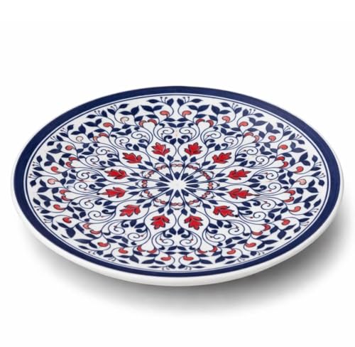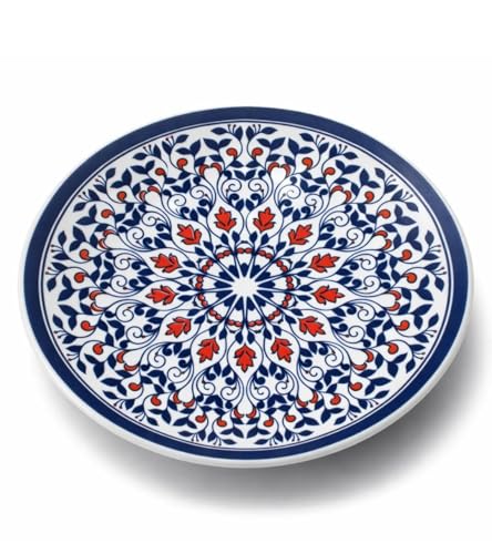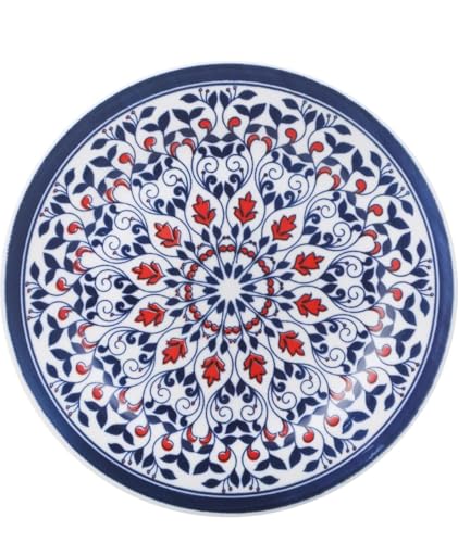 Generic - طبق بورسلين مسطح مستدير متعدد الألوان، 22.5 سم، تصميم زخرفي أزرق وأحمر