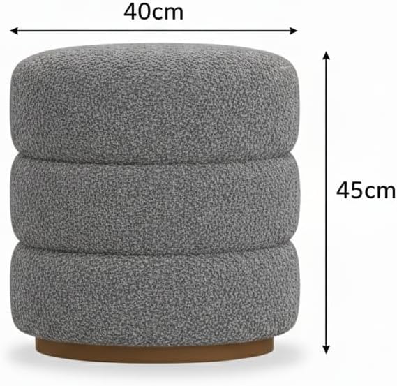 Generic - مسند عثماني مبطن دائري، اوف وايت، قاعدة خشبية، تصميم عصري، 44 × 44 × 44 سم، قماش