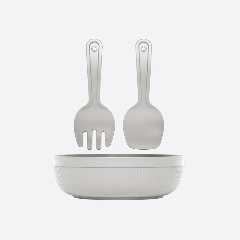 Generic - بولة سلطة دائري مع أدوات مائدة 4 لتر (بيج)