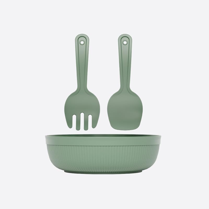 Generic - بولة سلطة دائرية مع أدوات مائدة 4000 ملليلتر (أخضر فاتح)