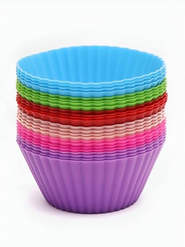 Generic - قوالب خبز دائرية من السيليكون للكيك والكب كيك مثالية لصنع الكيك والجيلي والكريم كراميل - مستلزمات مطبخ دائرية أساسية لمغامرات الخبز (12 قالب)