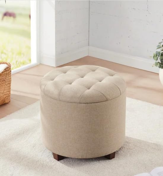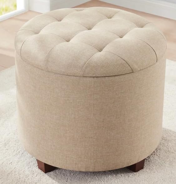 - تصميم أنيق: يتميز مسند القدم العثماني المستدير بتنجيد كلاسيكي معنقد بأزرار من قماش كريمي/بيج، مما يضيف لمسة راقية إلى غرفة نومك أو ديكور غرفة المعيشة
