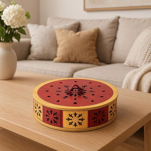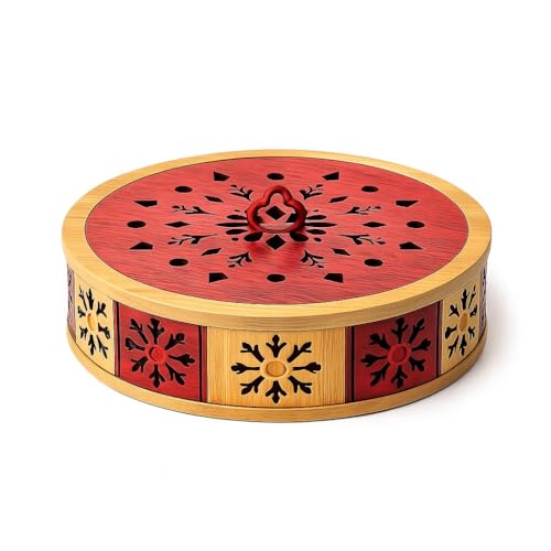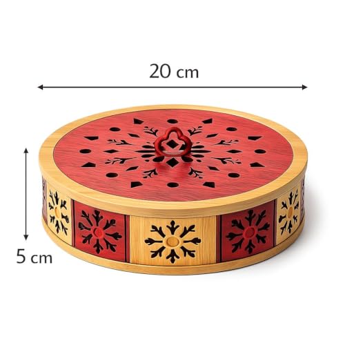 Generic - علبة حلويات خشبية دائرية بتصميم زخرفي، أحمر وبيج، 20 سم × 5 سم