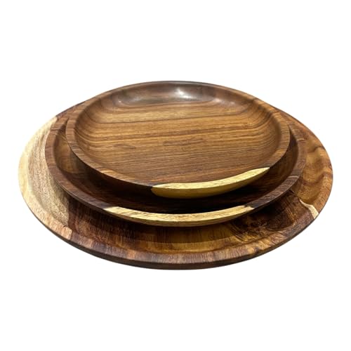 Generic - أطباق تقديم طعام خشبية دائرية، مجموعة من 3 قطع، من خشب الأسورسوس الطبيعي، أطباق طعام مقاس 20 سم 25 سم و30 سم