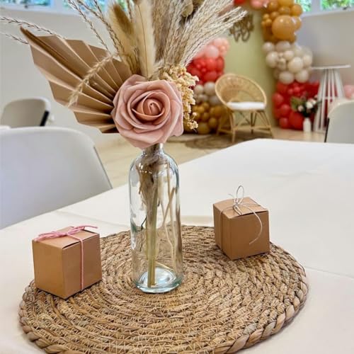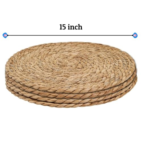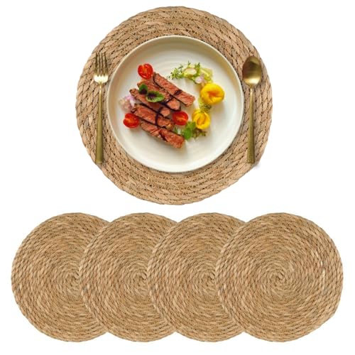 Qavinch - مفارش راتان دائرية من نسيج محبوك يدويًا بنمط بوهو طبيعي، قواعد أطباق من خزامي الماء لأطباق العشاء بتصميم ريفي، ديكور حصائر طاولة من الخوص الريفي للمنزل وحفلات الزفاف، مقاس 38 سم، طقم من 4 قطع