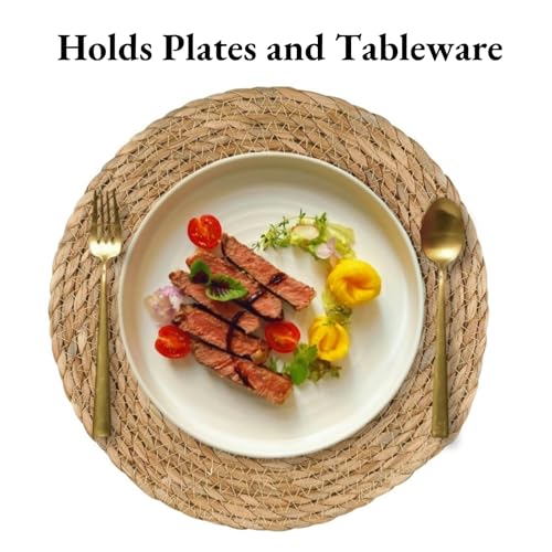 - 【تصميم طبيعي ومصنوع يدويًا】: تتميز المفارش المنسوجة بتصميم منسوج متين وشكل دائري، وتحتوي مفارش الطعام الدائرية هذه على تصميم منسوج بإحكام شديد من عشب التيفا (خزامي الماء)، وهي مفارش مخيطة جيدًا ومصنوعة يدويًا بعناية من خزامي الماء الطبيعي وسهلة التنظيف. ببساطة نظفها بقطعة قماش مبللة ثم خزنها في مكان جاف.