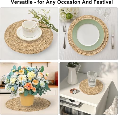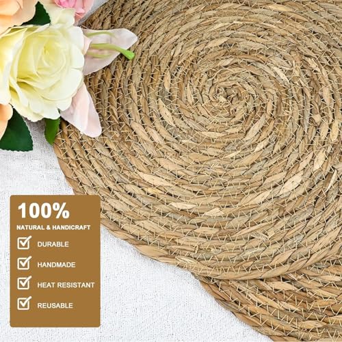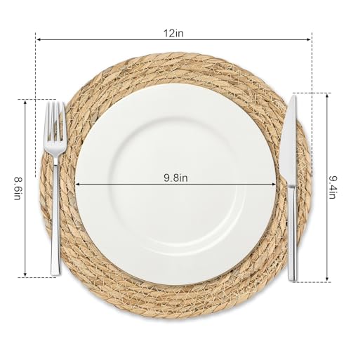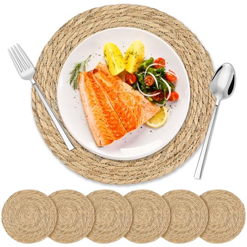 BALLMENT - مفارش دائرية بنسيج محبوك بفايبر طبيعي، مفارش طاولة خوص مضفرة من الراتان بتصميم بوهيمي مقاومة للحرارة للاستخدام في المطبخ والحفلات وطاولة العشاء وحفلات الزفاف والنزهات - 6 قطع، قطر 30 سم