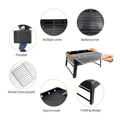 - 【التصميم】: مصممة بفتحات تهوية في كلا طرفي الشواية بحيث يمكن التحكم في تدفق الهواء بسهولة وتوزيع الحرارة بالتساوي على الشواية. يمكن إزالة شبكات الشواء نظيفة ومريحة للغاية، مثالية للغاية لحفلات الشواء من 3 إلى 5 أشخاص.