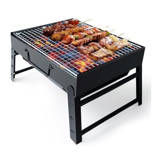 ROUNY - شواية فحم محمولة قابلة للطي من فولاذ مقاوم للصدأ للنزهات والحديقة والشرفة والتخييم والسفر والمشي لمسافات طويلة من روني