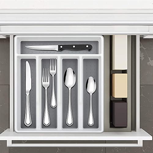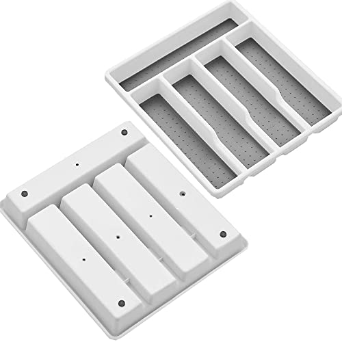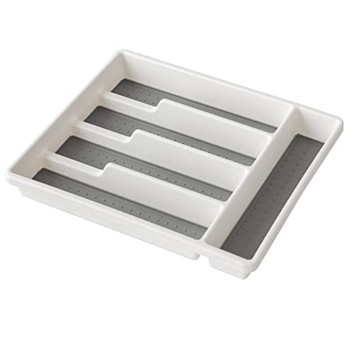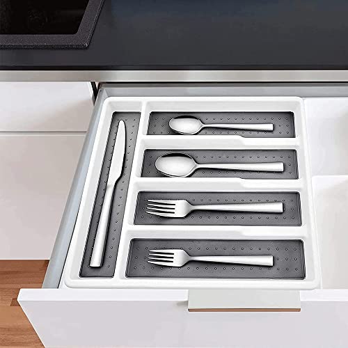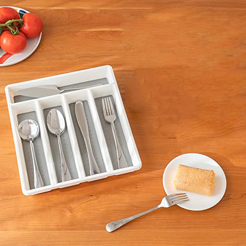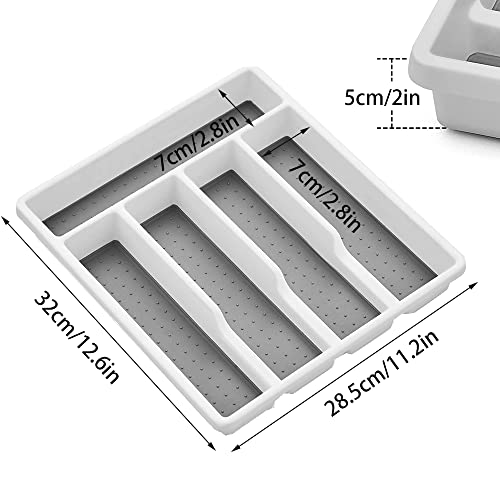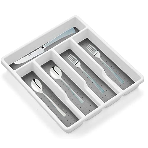 Rousey - صينية تنظيم أدوات مائدة للأدراج مقسمة إلى 5 أجزاء، صينية أدوات مائدة بلاستيكية بلون أبيض لتخزين الملاعق والشوك والسكاكين من روسي
