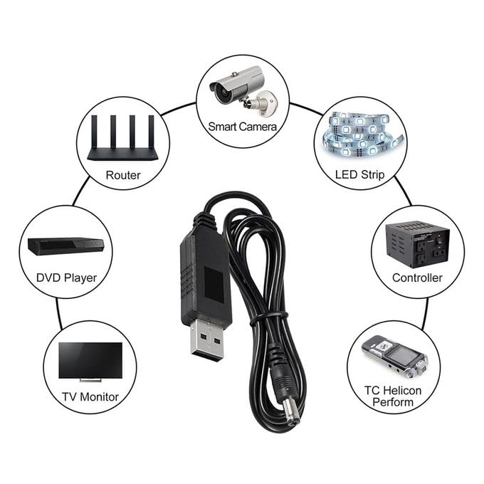 - توافق عالمي: كابل محول طاقة USB يحول 5 فولت إلى 12 فولت لتشغيل الراوتر من الباور بانك أثناء انقطاع الكهرباء