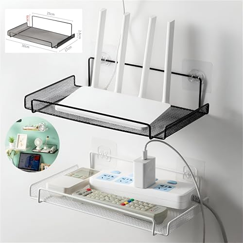Generic - حامل راوتر - تصميم بحافة مرتفعة لتخزين آمن لأجهزة توجيه WiFi وأجهزة التحكم عن بعد والأدوات المنزلية الصغيرة في غرف النوم وغرف المعيشة والحمامات بدون تركيب مثقاب (2 قطعة)