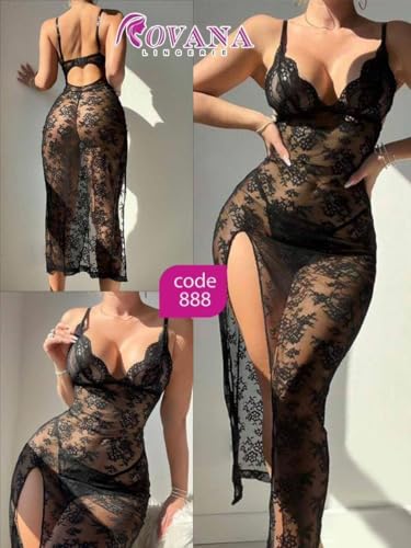 Generic - فستان لانجري طويل من روفانا، مقاس واحد يصل الى 85 كيلو، اسود، موديل - 888