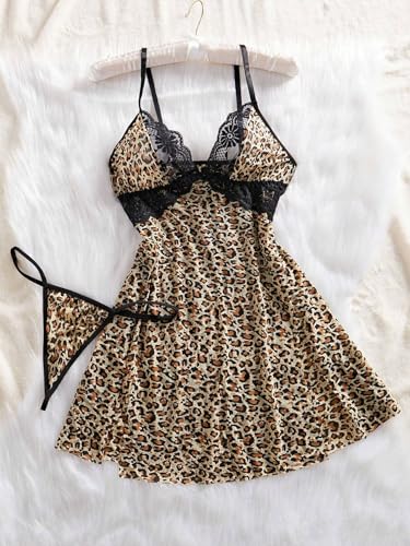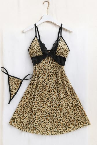 Generic - فستان لانجيري قصير من روفانا، مقاس واحد يصل الى 85 كيلو، بيج تايجر، موديل - 932