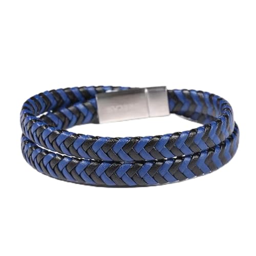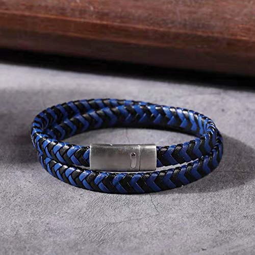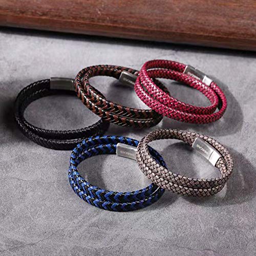 DEECAS - سوار من الجلد الطبيعي بتصميم مضفر ومطعم بخرزات ومزود بمشبك مغناطيسي من الستانلس ستيل للرجال والنساء من روفاو, معدن, غير معروف