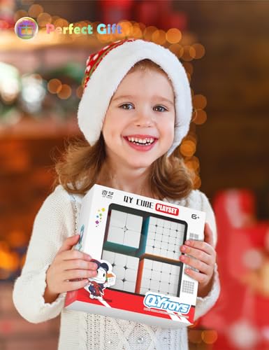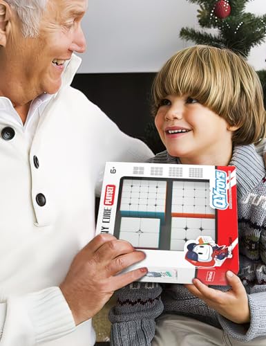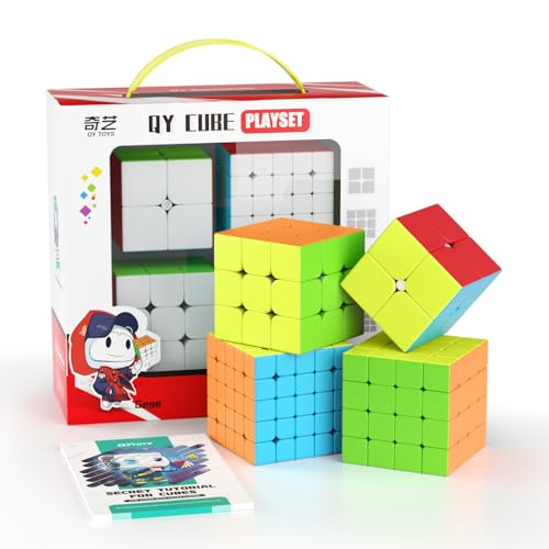 ROXENDA - مجموعة مكعبات السرعة 2×2 3×3 4×4 5×5 من روكسندا مكعب سرعة سحري بدون ملصقات مع صندوق هدايا ألعاب تعليمية لمكعبات