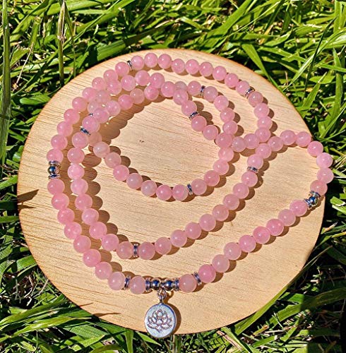 Roxxy Crystals - مالا الكوارتز الطبيعي من روكسي كريستالز - 108 خرزة، روز