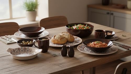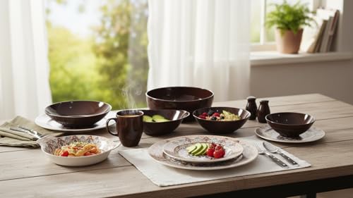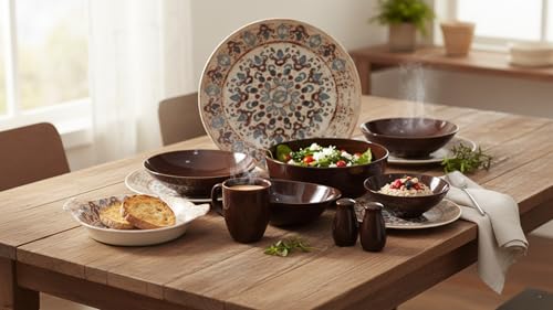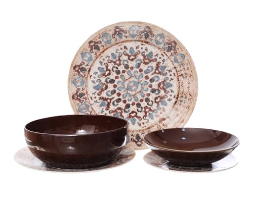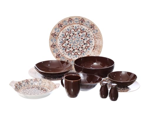Royal Alfredo - طقم عشاء بورسلين رقمي من رويال الفريدو، بني (ناعم) مكون من 36 قطعة