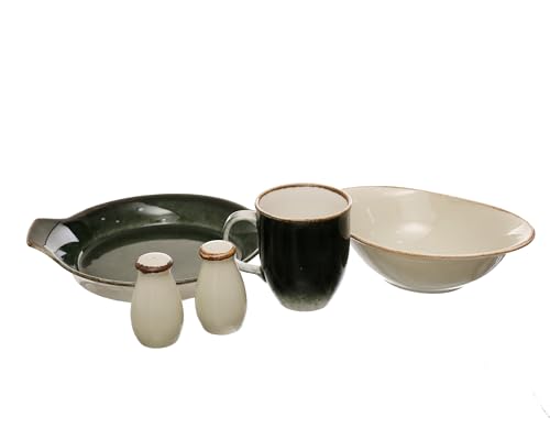 - 6 أكواب / 2 ملاحة / 1 طبق تقديم بمقبض 21 سم / 1 طبق تقديم دائري 32 سم.