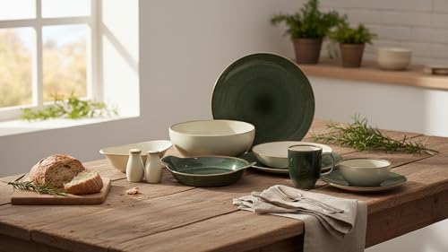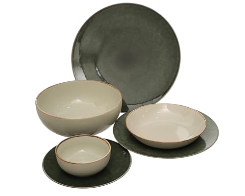 - مكون من 6 أطباق مسطحة 27 سم، 6 أطباق غويط 20 سم، 6 أطباق للجاتو 21 سم، 6 بولة للشوربة 12 سم.
