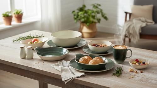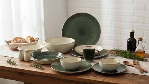 Royal Alfredo - طقم عشاء بورسلين مكون من 36 قطعة مع خط بني لامع من رويال الفريدو