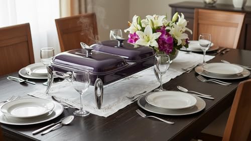 Royal Alfredo - سخان طعام مزدوج من زجاج ملون مزود بحاملين للشموع من رويال الفريدو، بسعة 2 × 1.5 لتر