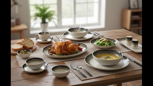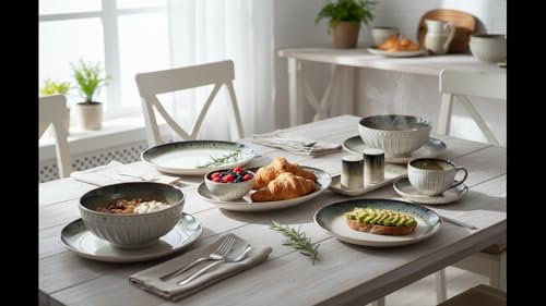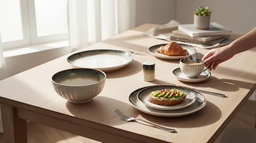 - 6 أطباق تقديم مسطحة 21 سم و1 وعاء حساء 20 سم