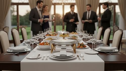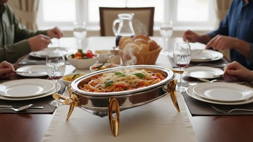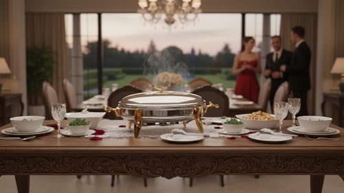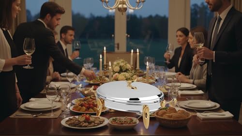Royal Alfredo - سخان طعام بيضاوي من رويال الفريدو، فضي وذهبي، كبير، 3 لتر، 2 شمعة