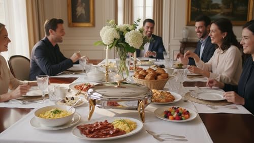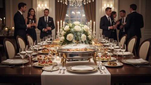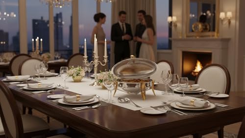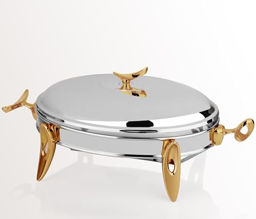 Royal Alfredo - سخان طعام بيضاوي من رويال الفريدو، لون فضي وذهبي، مقاس M / 2.2 لتر / شمعة واحدة