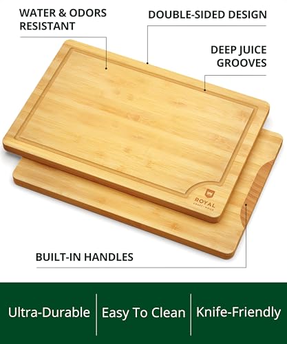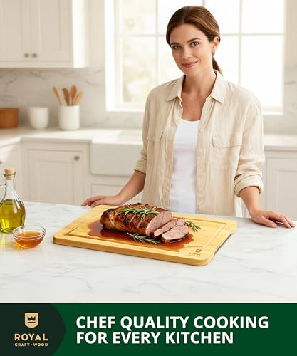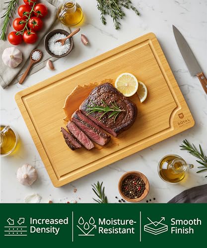 ROYAL CRAFT WOOD - لوح تقديم وتقطيع كبير للغاية من الخيزران لإعداد وجبات المطبخ ووجبات تشاركوتيري من رويال كرافت وود - لوح تقطيع اللحوم بتجويف عميق للعصارة والجبن - هدية مثالية للمطبخ (مقاس كبير للغاية 45 × 30 سم)