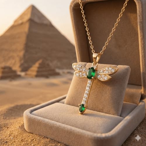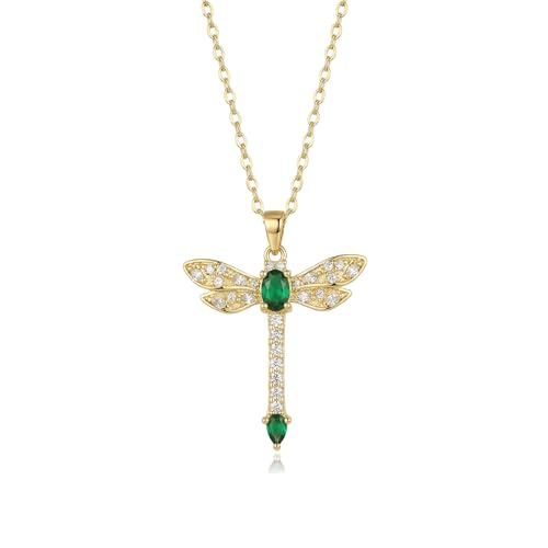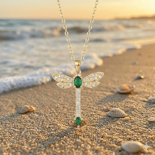 Generic - سلسلة "اليعسوب الملكي" مرصعة بالزمرد الأخضر والزركون اللامع | مطلية بالذهب عيار 18 | تصميم فاخر مستوحى من الطبيعة | هدية راقية للمناسبات والسهرات | من الاستانلس ستيل المقاوم للصدأ والبهتان