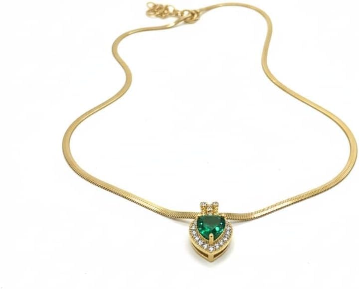 Generic - عقد انيق بتصميم قلب "حجر الزمرد الملكي"
