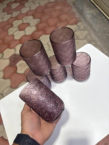 - مصنوعة من زجاج سميك فاخر، هذه المجموعة تنضح بجودة فائقة وصقل. تضمن مادته المتينة انطباعًا بصريًا غنيًا ومتانة دائمة.