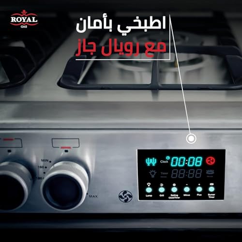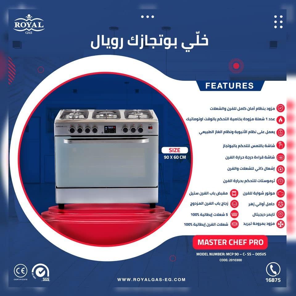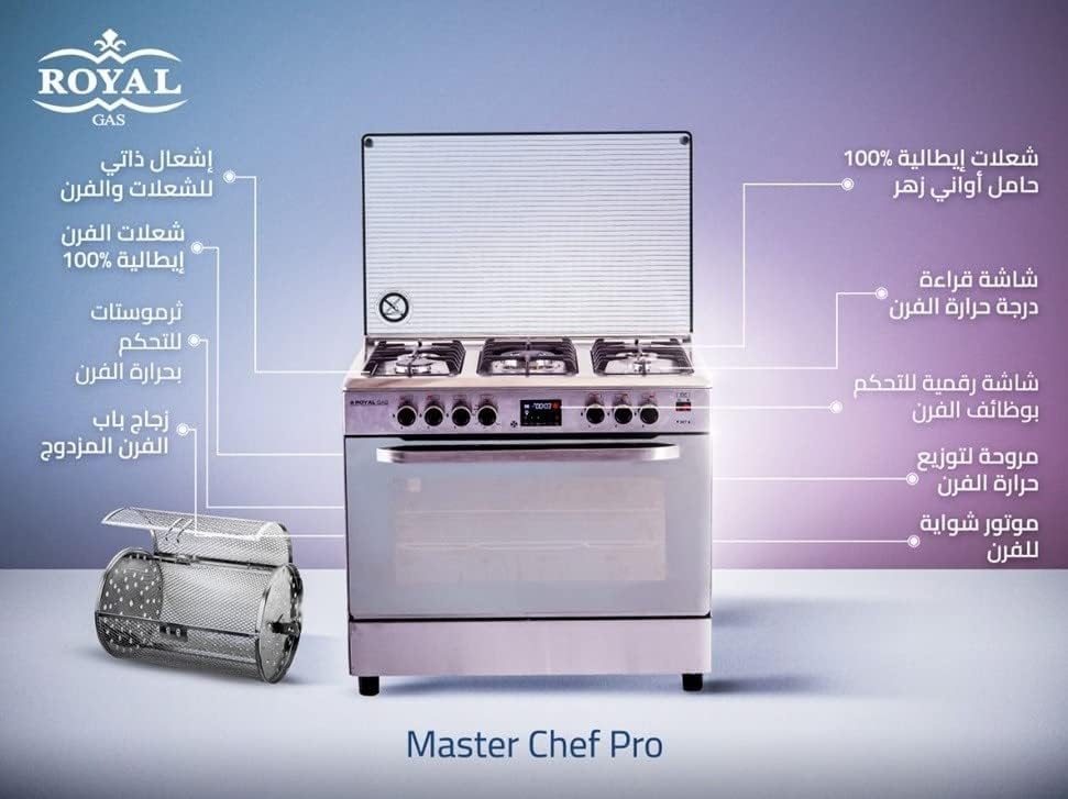 Generic - بوتجاز غاز رويال Master Chef Pro، عدد 5 شعلة، 90 سم، ستانلس ستيل,2 مروحة,امان كامل,2 شاشة ديجيتال