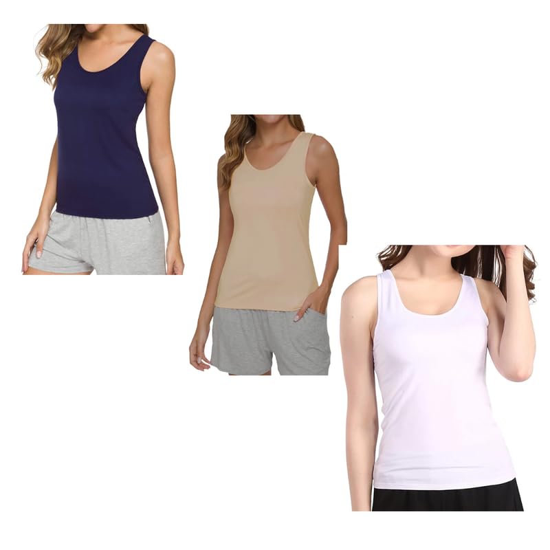 Royal Tex - طقم ملابس ليكرا بحزام عريض للنساء من رويال بينك، مجموعة من 3 قطع، لون ابيض وبيج-ازرق، مقاس M - كود 20