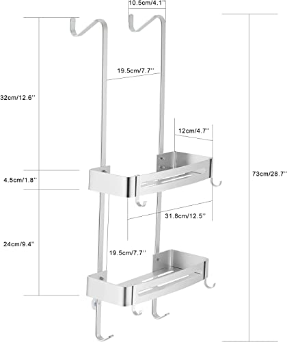 - حامل استحمام طويل بسعة تخزين ممتازة - 2 سلة استحمام عميقة لوضع الشامبو وجل الاستحمام والصابون ومنظف الوجه ولوشن الجسم وكوب الأسنان وما إلى ذلك. 4 خطافات ثابتة وهدية (4 خطافات قابلة للإزالة) لتعليق الإسفنج وشفرة الحلاقة والمناشف والفرش وكرات الحمام والملابس وما إلى ذلك. إنه منظم تخزين مثالي موفر للمساحة لتنظيم معظم أغراض حمامك.