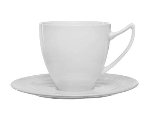 Royal Porcelain - فنجان قهوة بسعة 250 مل وصحن حجم 15 سم من البورسلين يتميزان بملمس ناعم من رويال بورسلين، أبيض، طقم من قطعتين