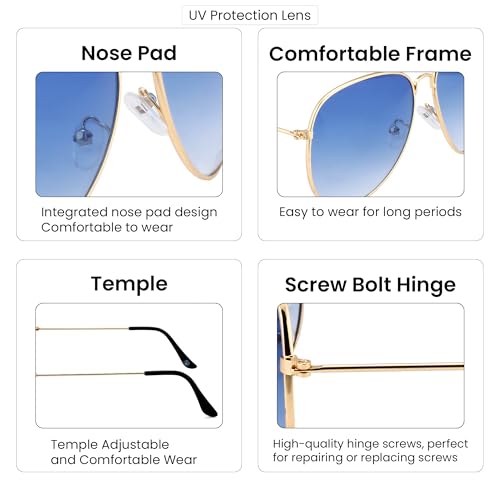 ROYAL SON - نظارات شمسية من رويال سون للجنسين للحماية الأشعة فوق البنفسجية عدسة C1 زرقاء متدرجة | إطار ذهبي