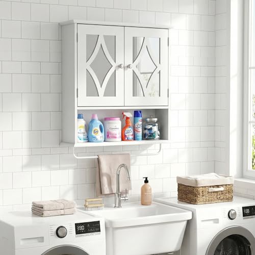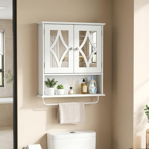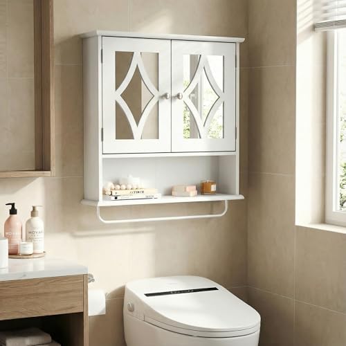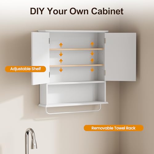 RoyalCraft - خزانة ادوية للحمام تثبت على الحائط من رويال كرافت، خزانة تخزين فوق المرحاض مع رف منشفة ورف قابل للتعديل، خزانة مناشف حمام كبيرة تثبت على الحائط 22 × 25 انش (ابيض)