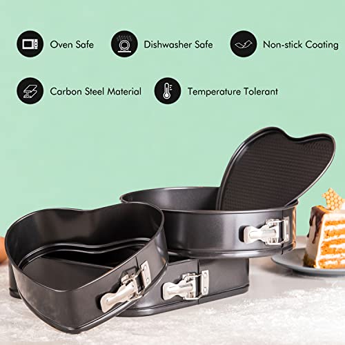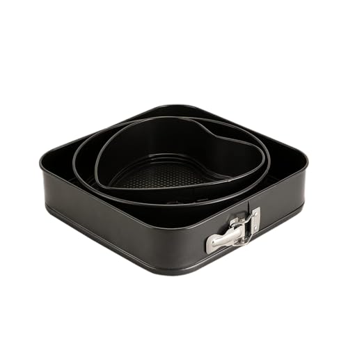 - صواني غير لاصقة من 3 قطع - تتضمن مجموعة الأواني الزنبركية هذه 3 قطع من المقالي غير اللاصقة على شكل دائري وقلب ومربع لاستخدامها في خبز كعك احتفال مثير للإعجاب. إنها رائعة وعملية للغاية لإزالة كعكة الجبن والإسفنج الرقيق.