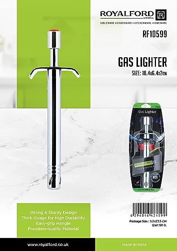 Royalford - رويال فورد ولاعة غاز، تصميم قوي ومتين، RF10599 | ولاعة عادية من الستانلس ستيل سهلة الامساك لموقد المطبخ، مقياس سميك عالي المتانة
