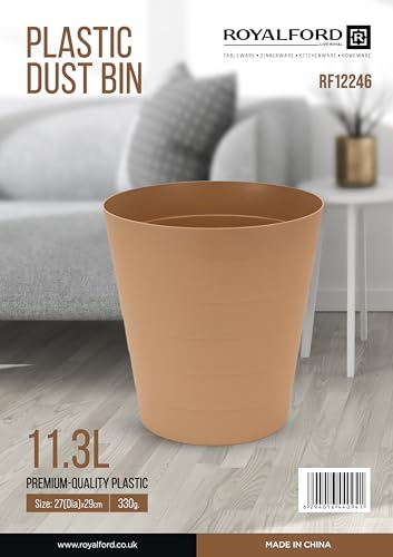 Royalford - سلة مهملات بلاستيك دائرية موديل RF12246 للمكتب والمنزل وغرفة النوم وغرفة الأطفال والمنزل والحمام من رويال فورد، لون أبيض، سعة 11.3 لتر