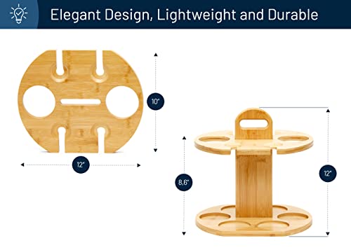 - تصميم أنيق: حامل الزجاجات هذا للاستخدام الداخلي أو الخارجي. خفيفة الوزن ومتينة. تتسع لزجاجتين و4 أكواب.